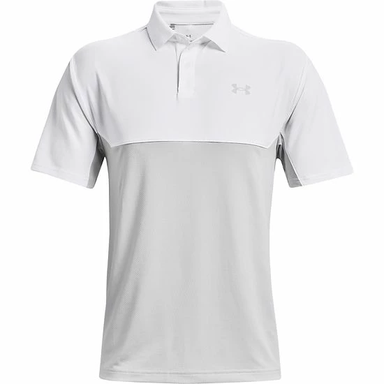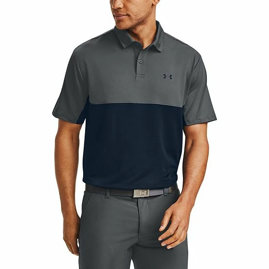 Fairway fashion. Look and feel great from tee to green with this men’s Under Armour golf polo featuring a colorblock pattern and performance design.