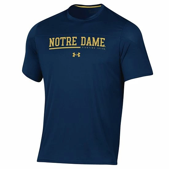 Put on the same apparel as your Notre Dame Fighting Irish with this Sideline Training T-shirt from Under Armour. It features understated Notre Dame Fighting Irish graphics printed on soft material. The droptail hem also provides a more comfortable fit.