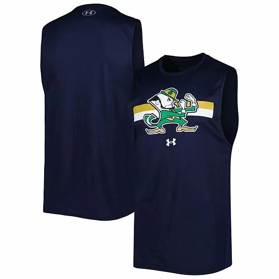 Men’s Under Armour Navy Notre Dame Fighting Irish Logo Striped Tech Performance Tank Top