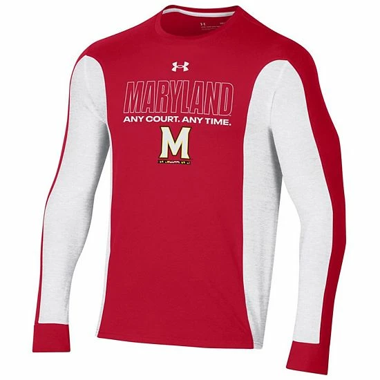 Show support for the Maryland Terrapins basketball team with this On-Court Shooter Bench Long Sleeve T-Shirt from Under Armour. Its vivid design in team colors features printed Maryland Terrapins graphics and a spirited motto. The lightweight material will also make this cooler-weather tee feel comfortable to wear all day.
