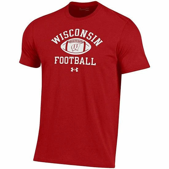 Stay dry as you rep the Wisconsin Badgers in this Football Practice T-shirt from Under Armour. Its performance cotton blend dries five times faster than cotton, making it the perfect tee for living an active lifestyle. The classic Wisconsin Badgers football graphics across the chest show off your fandom in style.