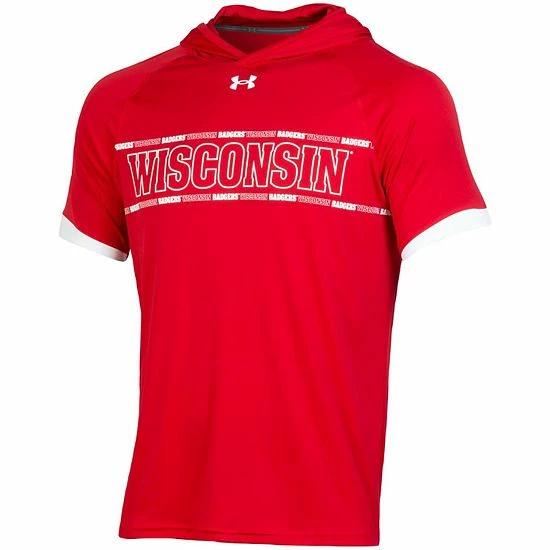 Stay cool and comfortable as you support your Wisconsin Badgers in this On-Court Basketball Shooting T-shirt from Under Armour. It uses HeatGear technology to wick away moisture and regulate your body temperature. Raglan sleeves also provide some extra arm room for better movement in this Wisconsin Badgers hoodie tee.