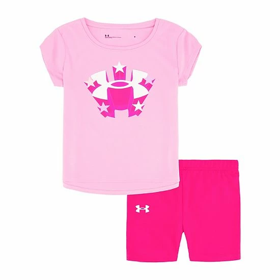 She’ll love the sporty style of this girls’ Under Armour tee and shorts set.