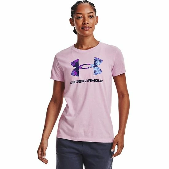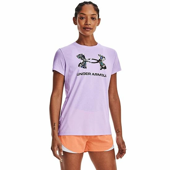 Train hard in this sporty women’s tee featuring a standout Under Armour graphic.